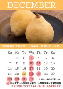 26日〜1月1日までデザート倶楽部はお休みで1月2日から新年営業が始まります